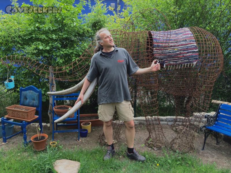 Mit lächerlicher Hose vor Elefant posend: Herr Wipplinger.