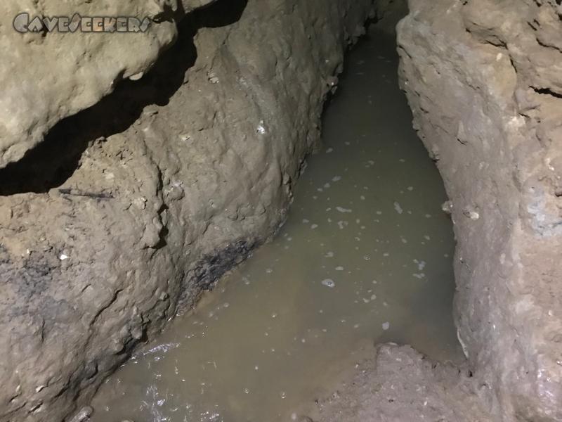 Am Eingangsschachtboden. Stehendes Wasser.